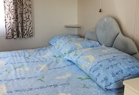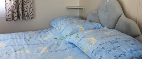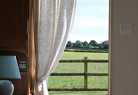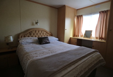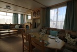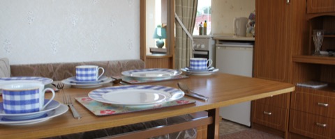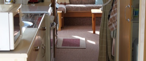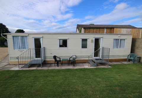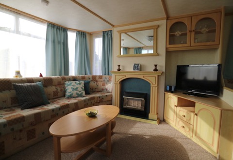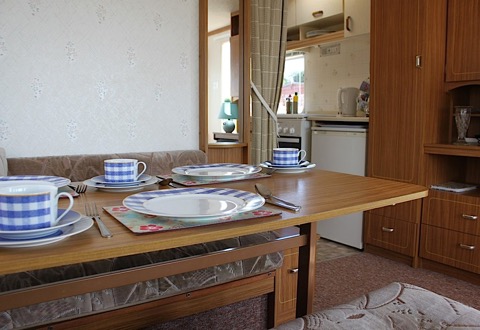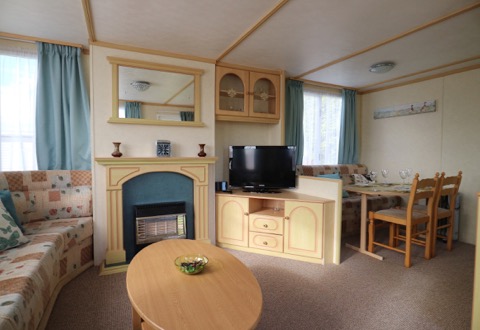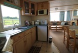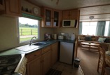 'Hayleaze' (34' x 10') has uninterrupted views across the fields and sleeps three to five. It has a double bedroom and a large single bedroom. A double bed can also be made up in the lounge area. All caravans have parking.