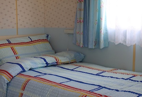 'Bluebird' (31' x 12') sleeps four to six, with two bedrooms, one large double and one twin. There is a spacious kitchen and a comfortable lounge and dining room, where the seating area can be made into an extra double bed.